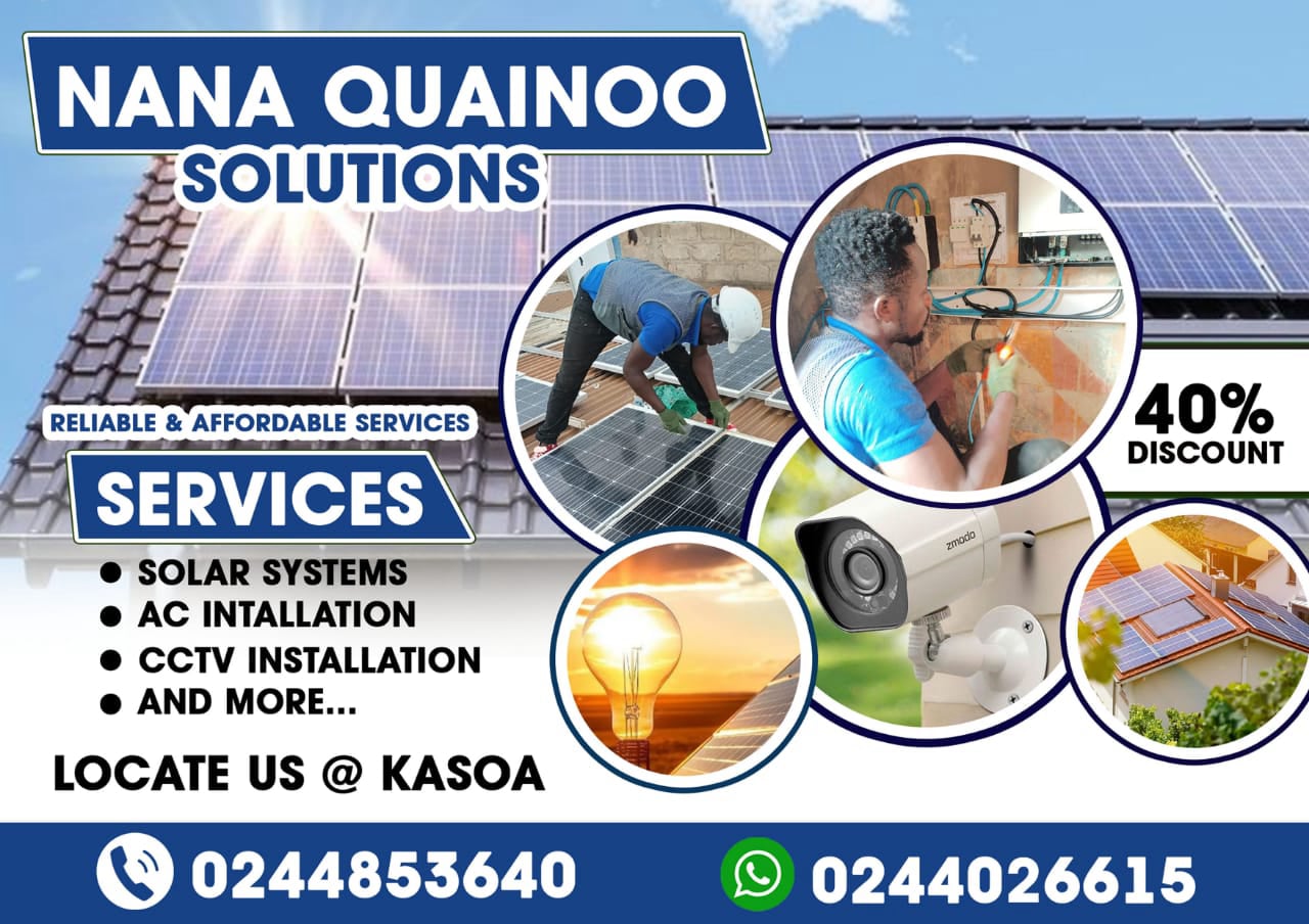 At Nana Quainoo Solutions , we believe in empowering every Ghanaian home and business with clean, reliable, and affordable solar energy, we provide affordable, reliable, and efficient off-grid solar systems.